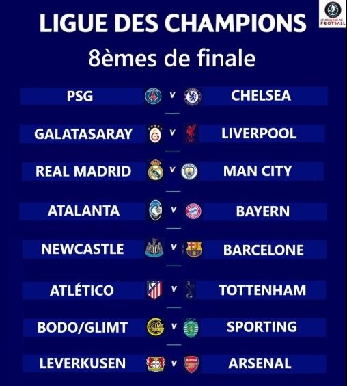 Avec un mélange équilibré entre grandes affiches, rivalités historiques et opportunités d’exploit, ces huitièmes de finale annoncent une compétition plus indécise que jamais. Les matchs aller-retour devraient offrir suspense, intensité et émotions fortes aux supporters européens, alors que la course vers le trophée le plus prestigieux du football de clubs entre dans sa phase décisive.