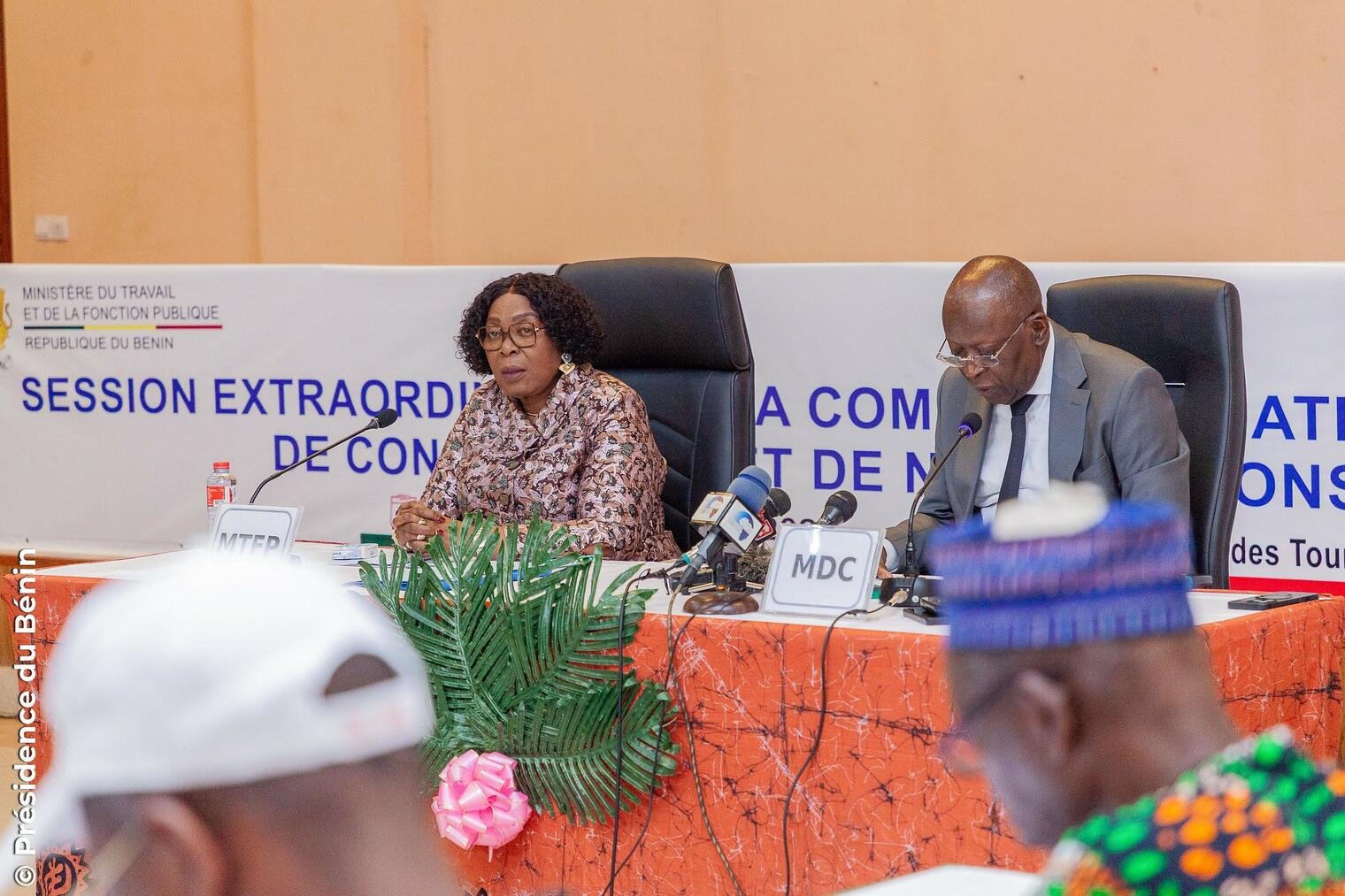 Cette session a réuni les principaux acteurs du système éducatif béninois : plusieurs membres du Gouvernement, notamment les Ministres chargés des différents ordres d’enseignement, les cadres de l’administration, les représentants du patronat (CNP-Bénin, CONEB), ainsi que les Secrétaires Généraux et délégués des Centrales et Confédérations syndicales, telles que la CSTB, la CSA-Bénin et la COSI-Bénin.